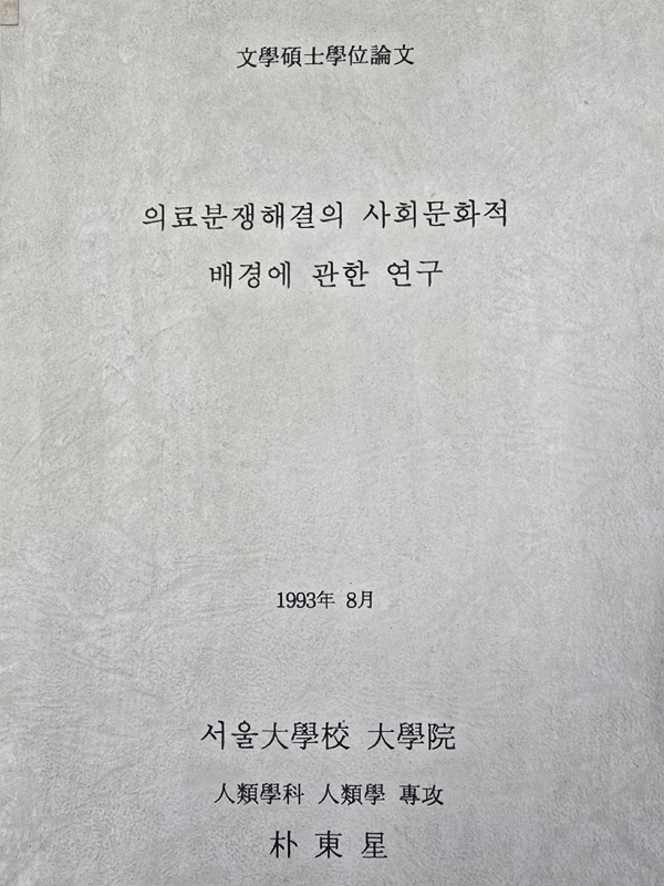 ‘의료분쟁해결의 사회문화적 배경에 관한 연구’ 발간